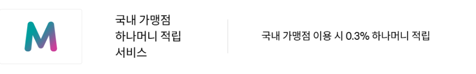장점 | 앱에서 신청/충전, 원화 환급 시 수수료 무료 | 국내 가맹점 하나머니 포인트 0.3% 적립 |