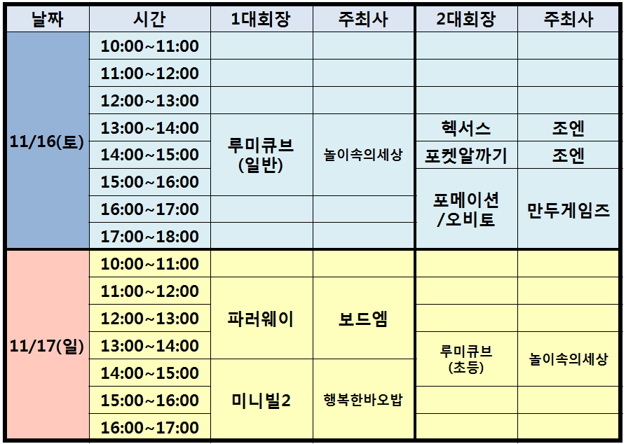 행사 구성 : 보드게임 무료체험, 보드게임 할인판매, 보드게임대회